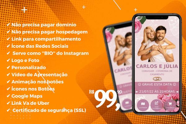 Surpreenda seus amigos com um convite de casamento digital. 👉 A partir de: R$ 99,00